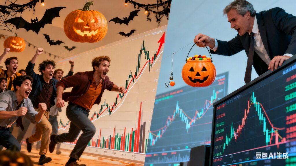 而「萬聖節效應」這個強大的市場共識,恰好為你創造了這批最完美的買家。當大戶預知到,在十月底將有無數散戶因為這個「規律」而瘋狂湧入市場時,他們就找到了最佳的 「高位散貨」 時機。這股可預測的、由散戶情緒驅動的購買力,成為了他們劇本中,將價格推向最後高潮,並完成華麗退場的關鍵「燃料」。